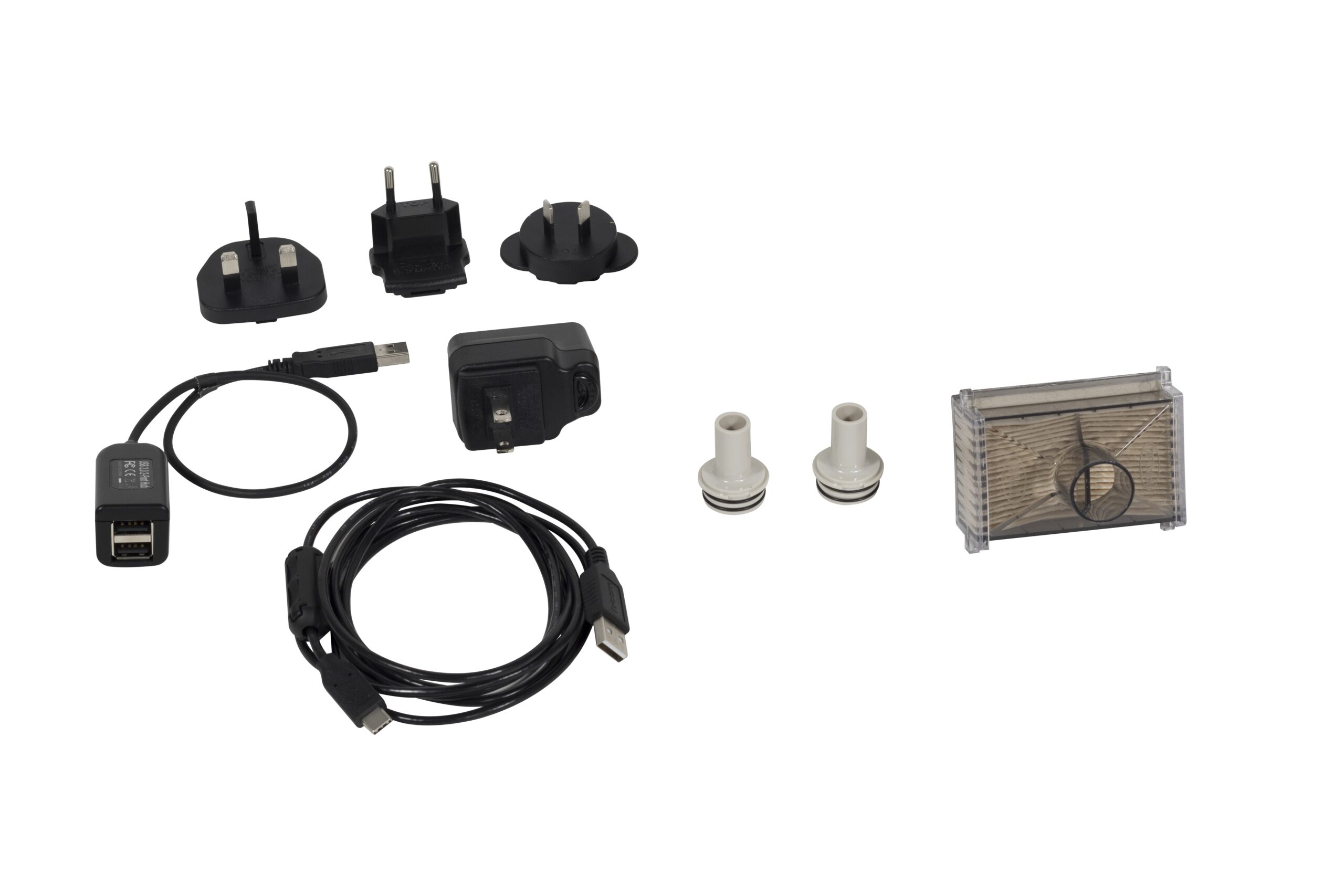 The TSI Mass Flow Multi-Meter 5310-5 provides a bi-directional flow rate measurement with 2% of reading accuracy across a wide flow range. Integrated temperature and pressure sensors compensate flow measurements to provide mass flow readings independent of temperature or pressure. In addition to temperature and absolute pressure measurements, a built-in totalizer measurement enables users to make volume measurements as a running total. All 5300 Series inline flow meter models come with a standard accessory kit (see full list below).