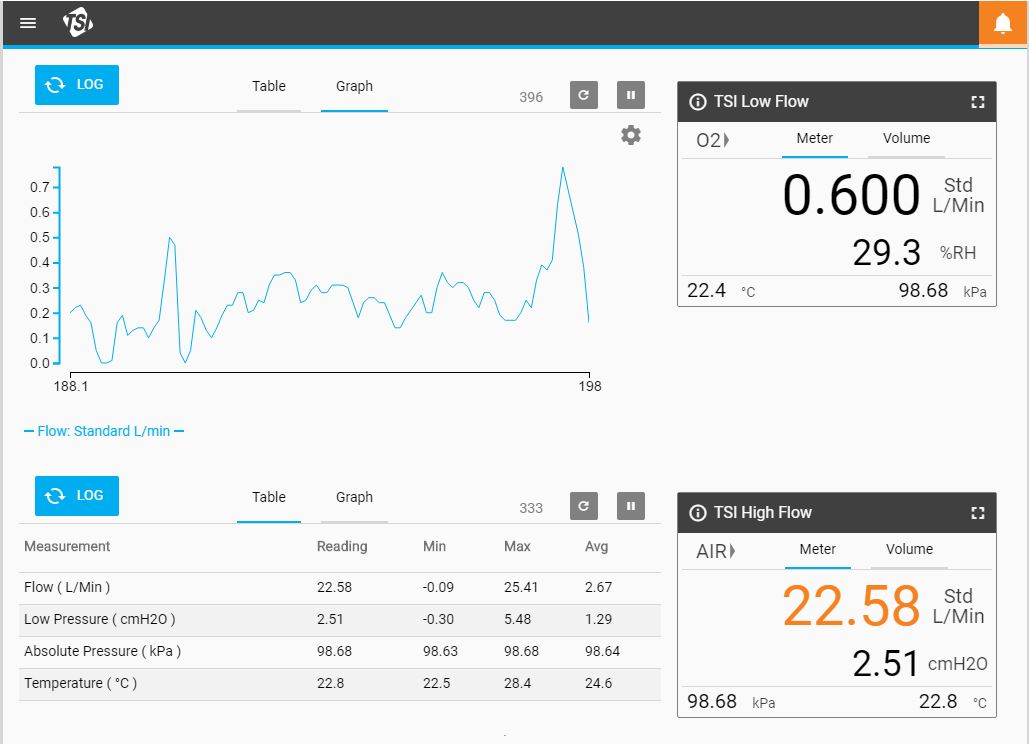 View up to four readings simultaneously from the color touchscreen display of this CO2 flow meter. Quickly and easily configure measurements and device settings directly from the flow meter. Connect and operate the gas flow meter through your PC with FLO-Sight software to take advantage of advanced data display and device settings options.