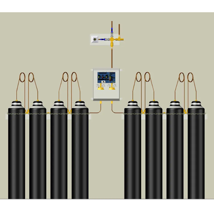 It provides a centralised source of bottled gas. The unit is designed to provide a duty and standby gas supply at a constant pressure via two banks of bottled gas cylinders with status monitoring.